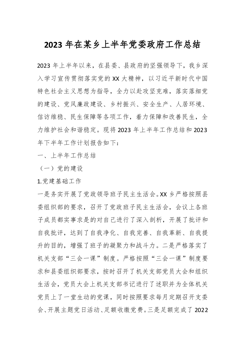 / 2023年在某乡上半年党委政府工作总结