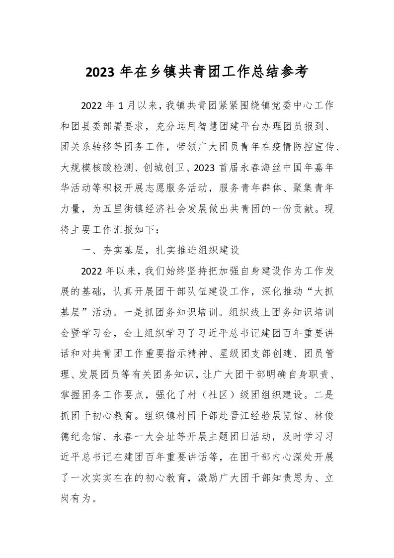 2023年在乡镇共青团工作总结参考