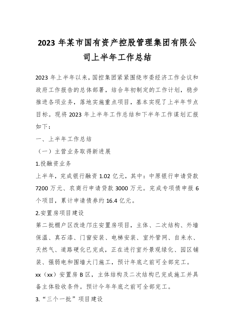 / 2023年某市国有资产控股管理集团有限公司上半年工作总结