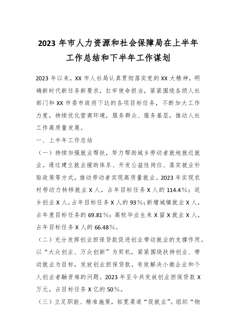 2023年市人力资源和社会保障局在上半年工作总结和下半年工作谋划