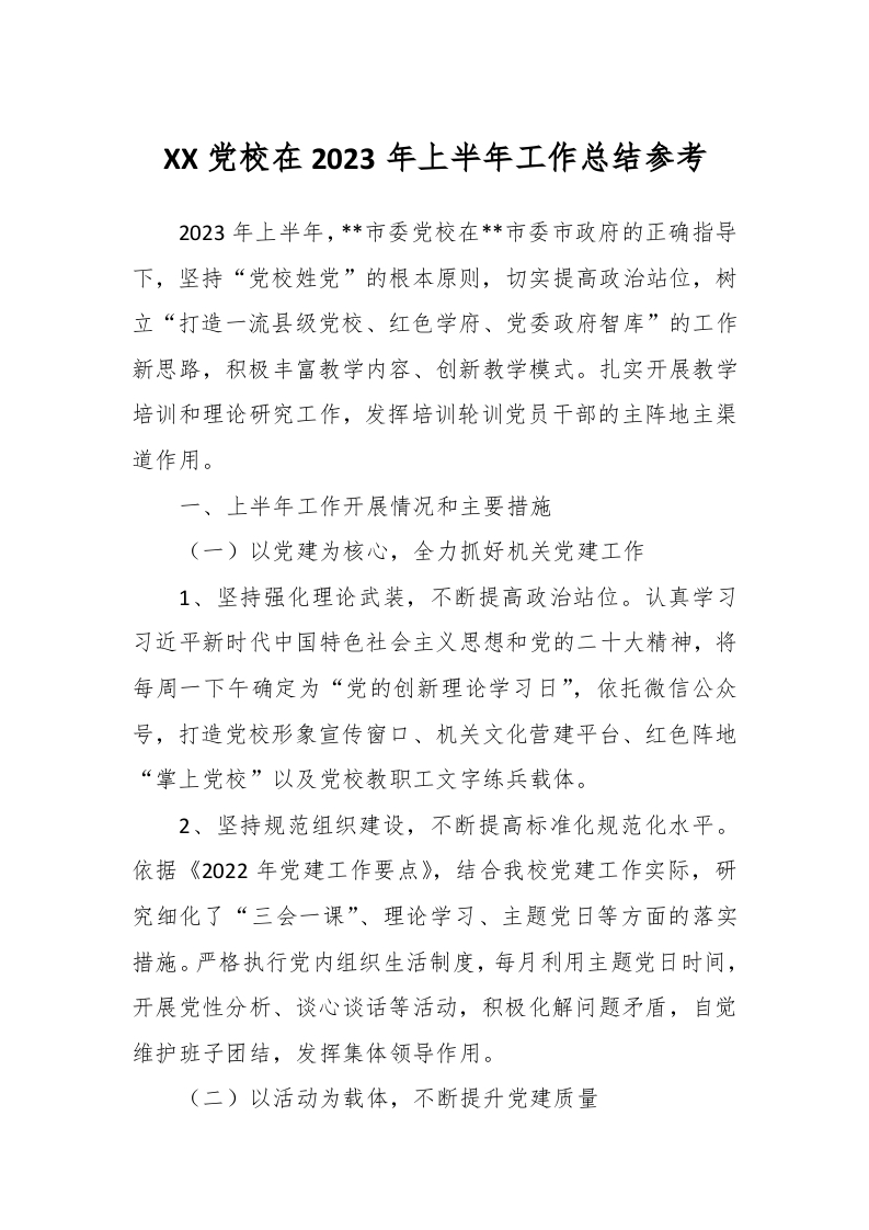 / XX党校在2023年上半年工作总结参考