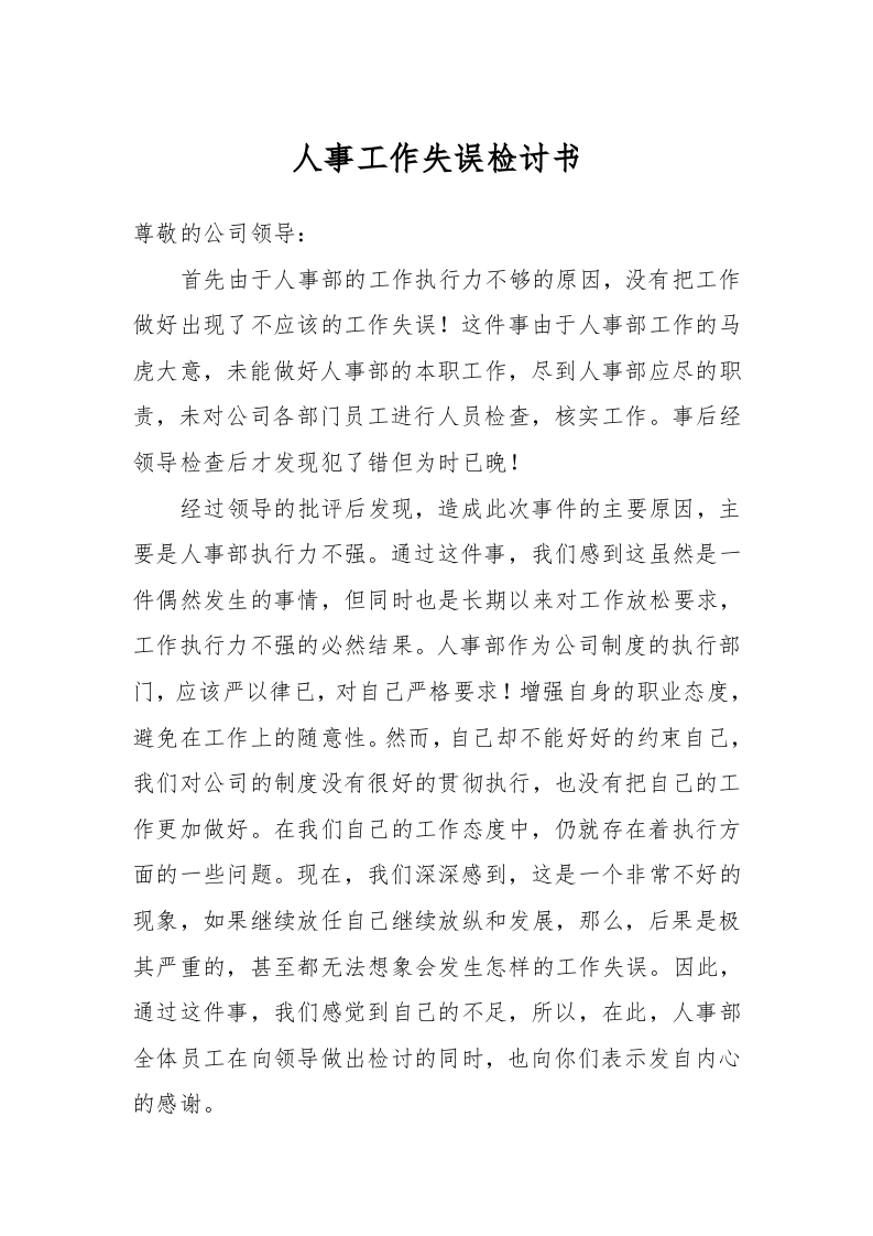 / 人事工作失误检讨书