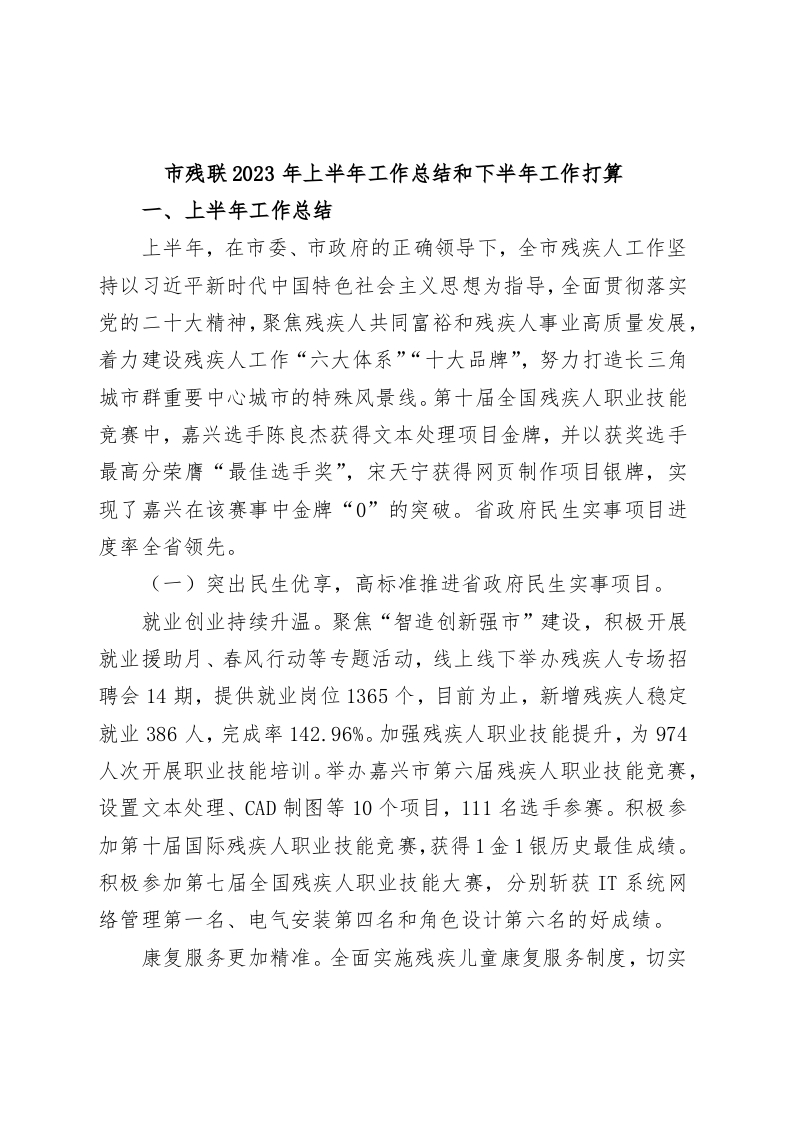 / 市残联2023年上半年工作总结和下半年工作打算