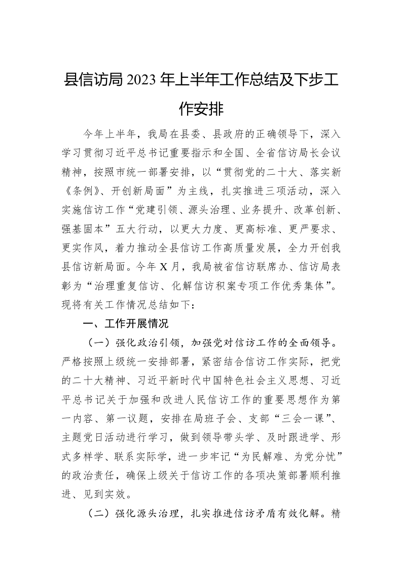 / 县信访局2023年上半年工作总结及下步工作安排