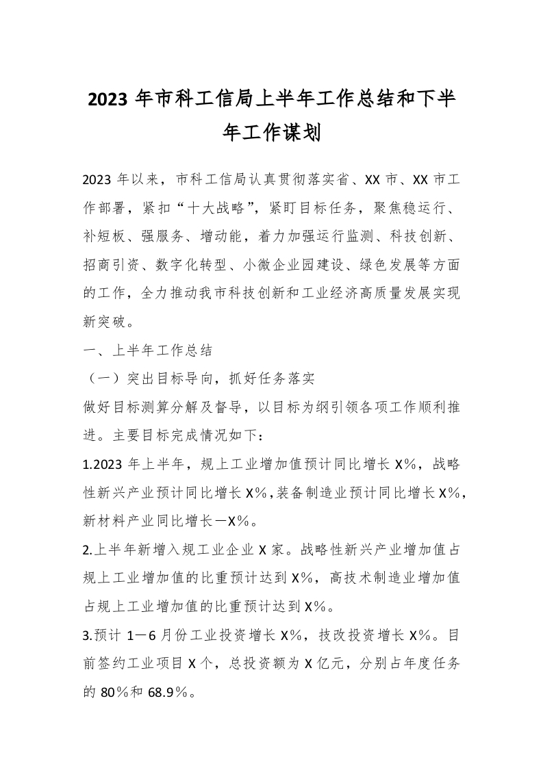 / 2023年市科工信局上半年工作总结和下半年工作谋划