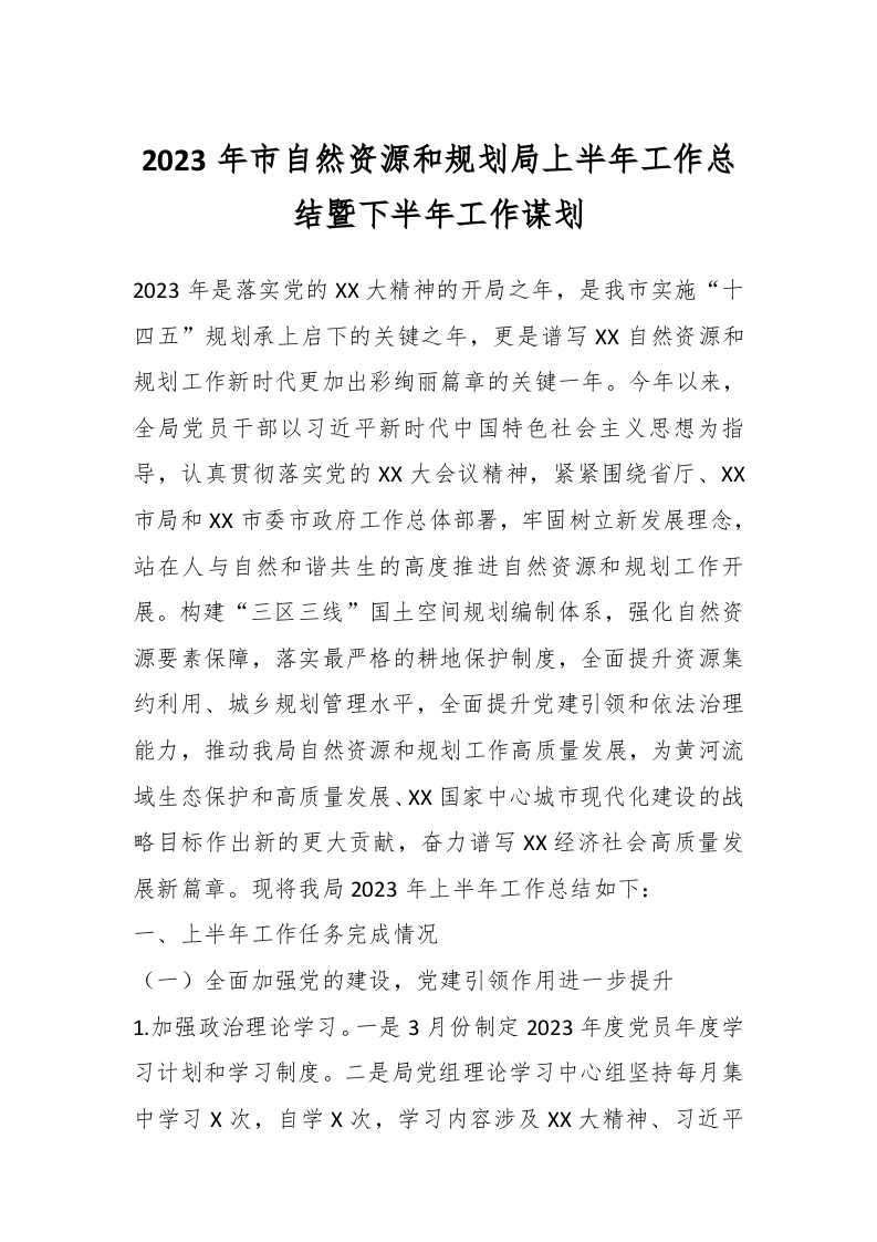 2023年市自然资源和规划局上半年工作总结暨下半年工作谋划