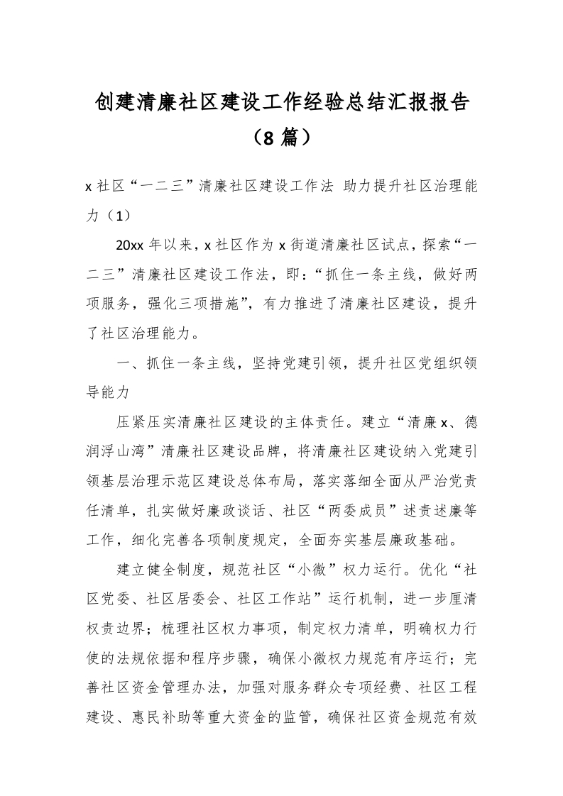 / (8篇)创建清廉社区建设工作经验总结汇报报告