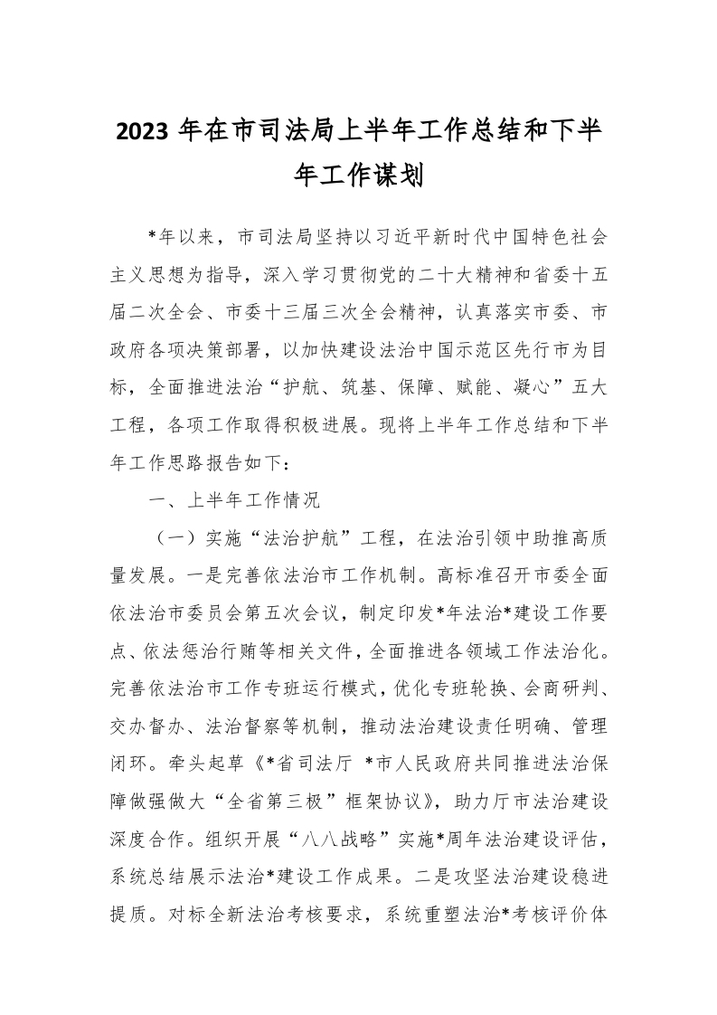 / 2023年在市司法局上半年工作总结和下半年工作谋划