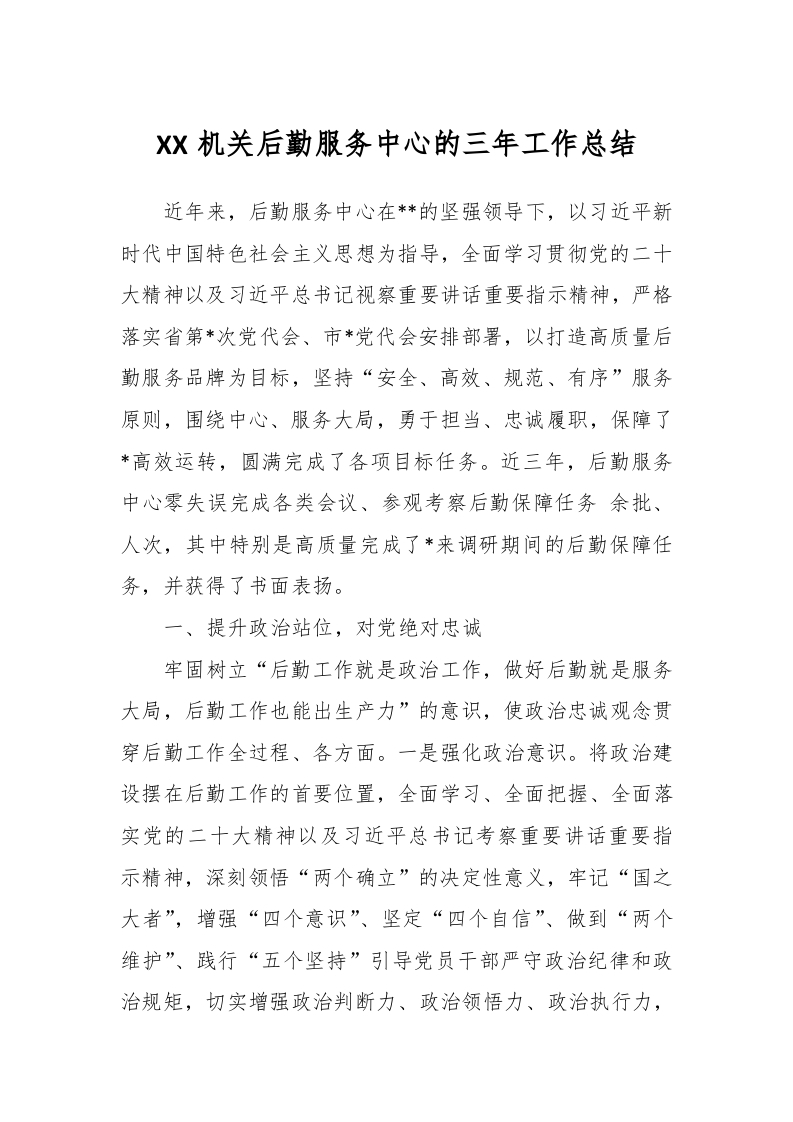 / XX机关后勤服务中心的三年工作总结