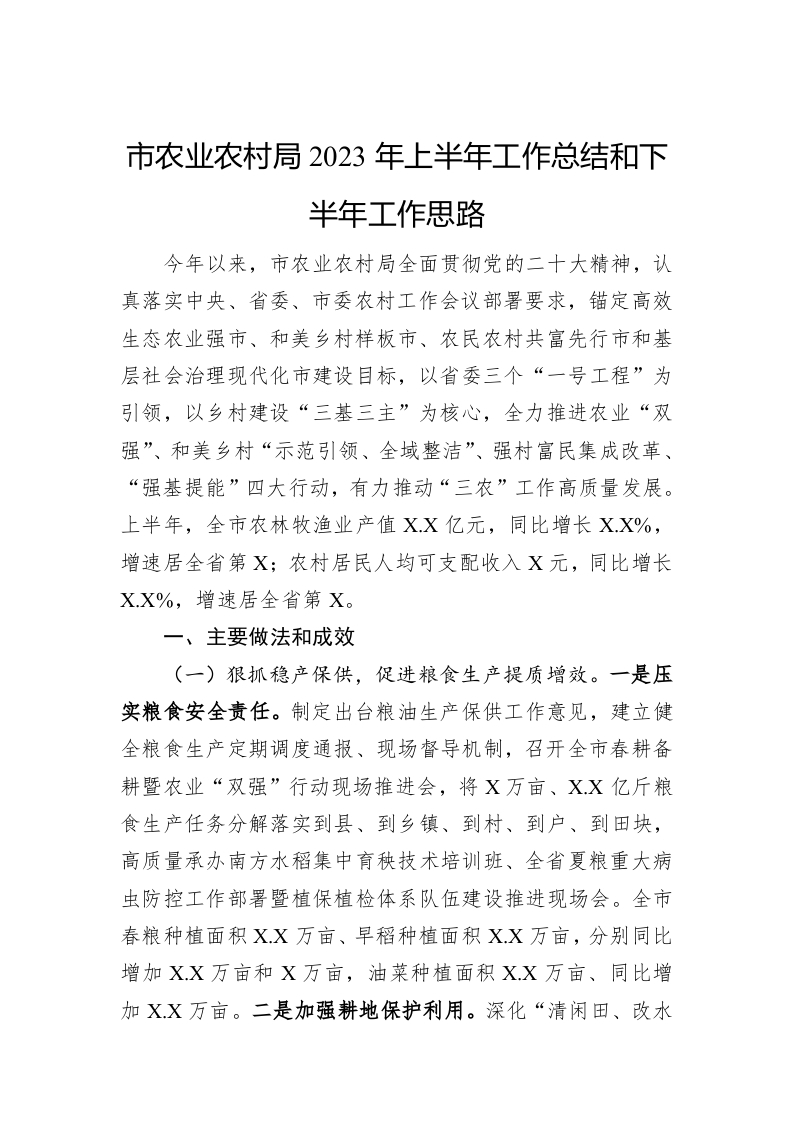 / 市农业农村局2023年上半年工作总结和下半年工作思路