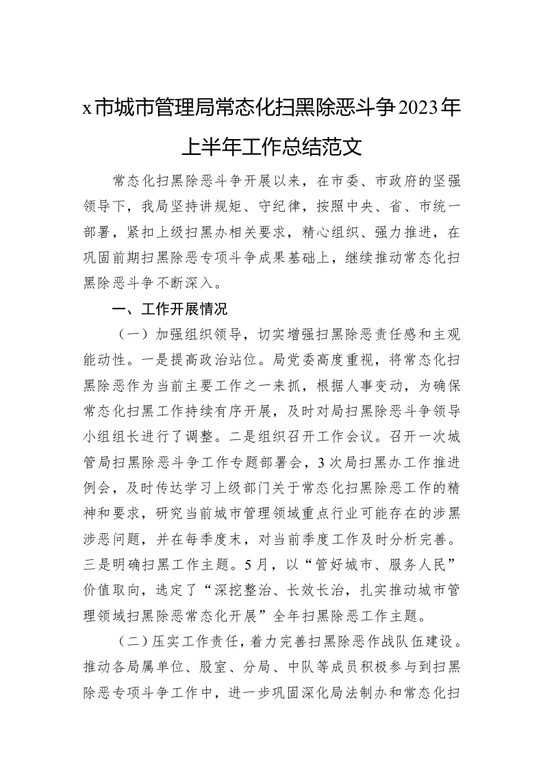/ x市城市管理局常态化扫黑除恶斗争2023年上半年工作总结范文