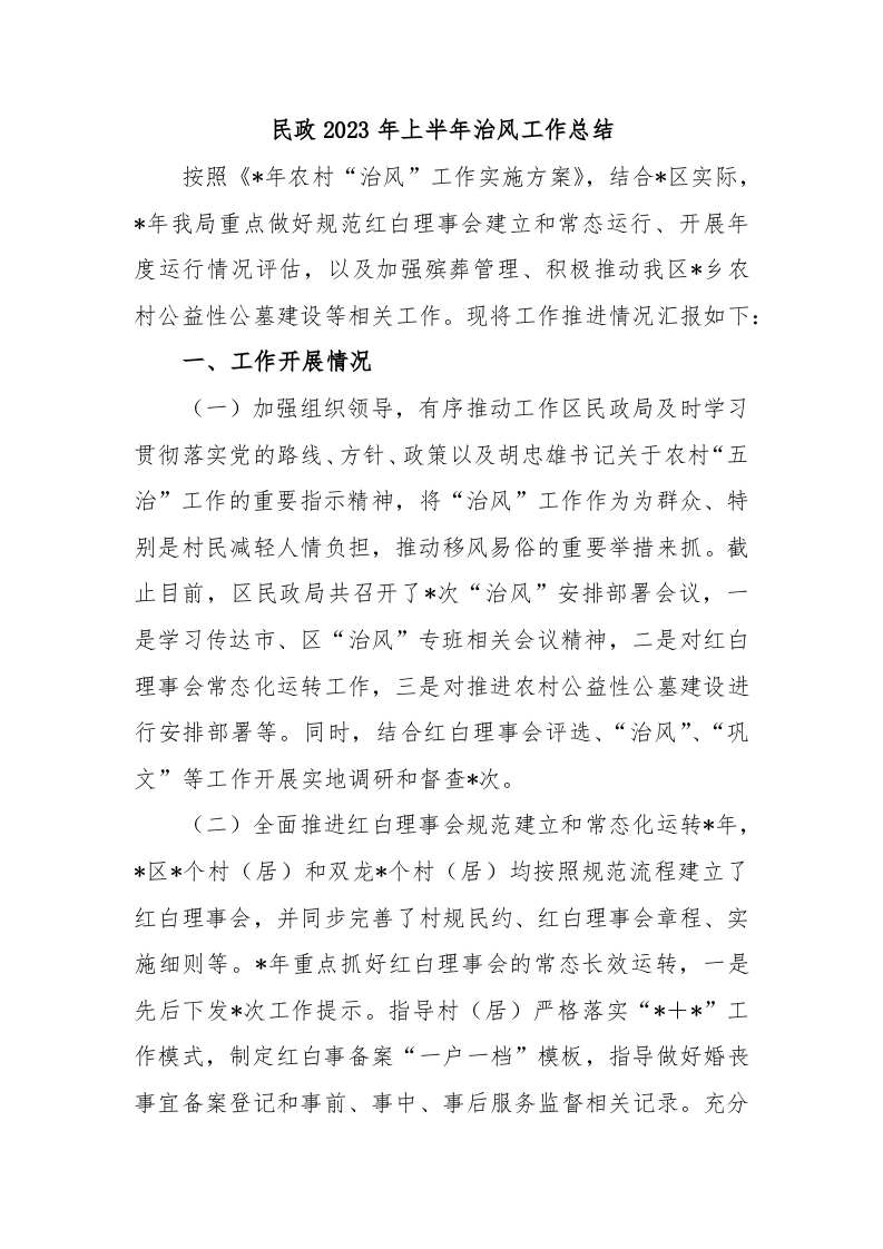 / 民政2023年上半年治风工作总结