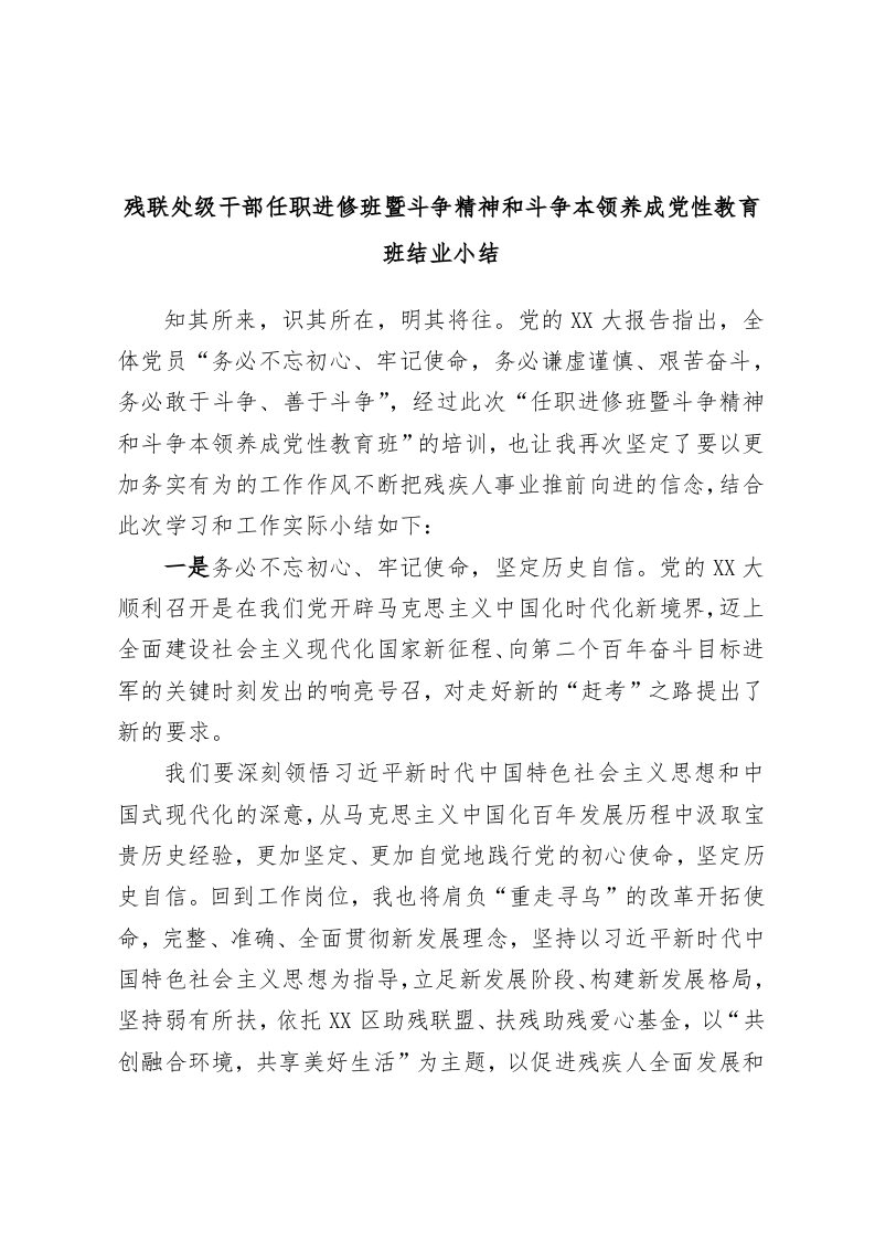 / 残联处级干部任职进修班暨斗争精神和斗争本领养成党性教育班结业小结