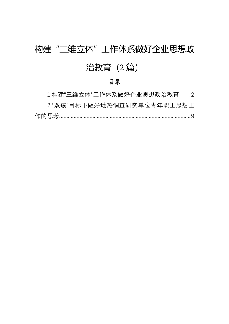 / 构建“三维立体”工作体系做好企业思想政治教育(2篇)