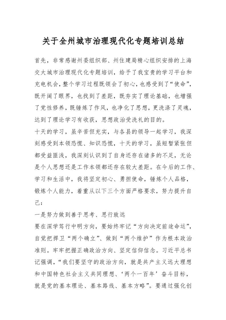 / 关于全州城市治理现代化专题培训总结