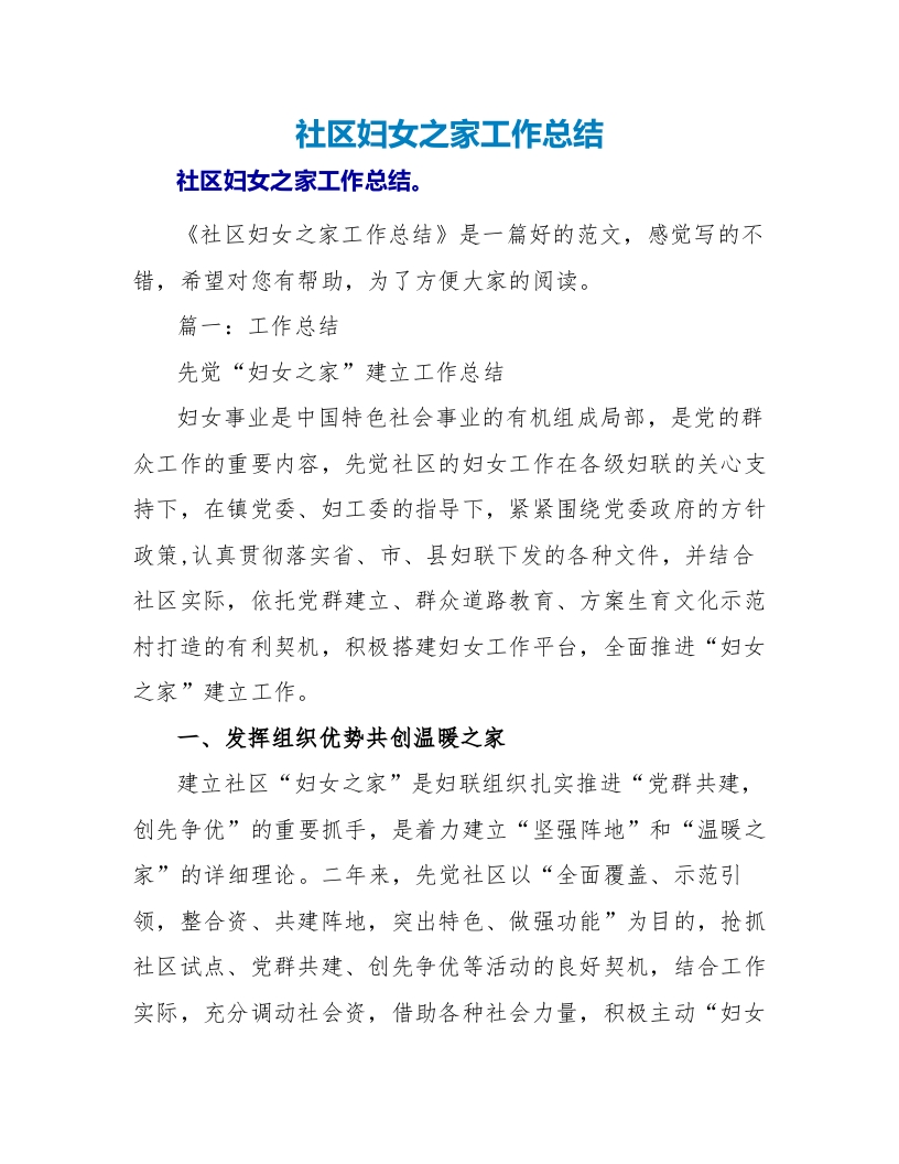 / 社区妇女之家工作总结