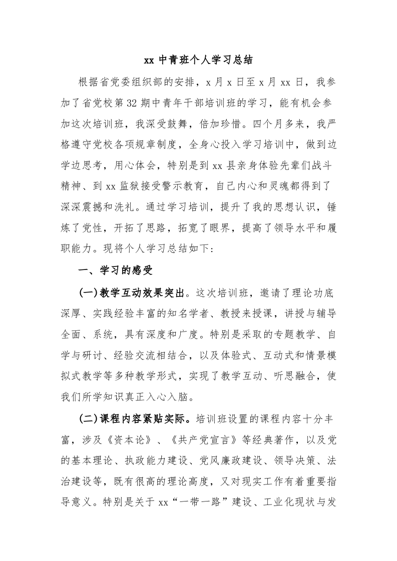 xx中青班个人学习总结