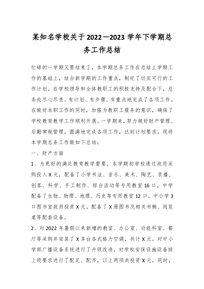 / 某知名学校关于2022-2023学年下学期总务工作总结
