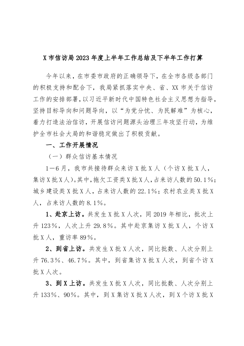 / X市信访局2023年度上半年工作总结及下半年工作打算