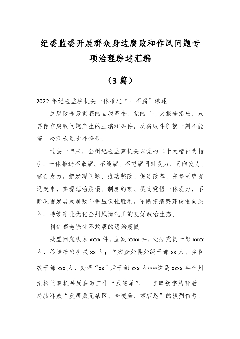 (3篇)在纪委监委开展群众身边腐败和作风问题专项治理综述汇编