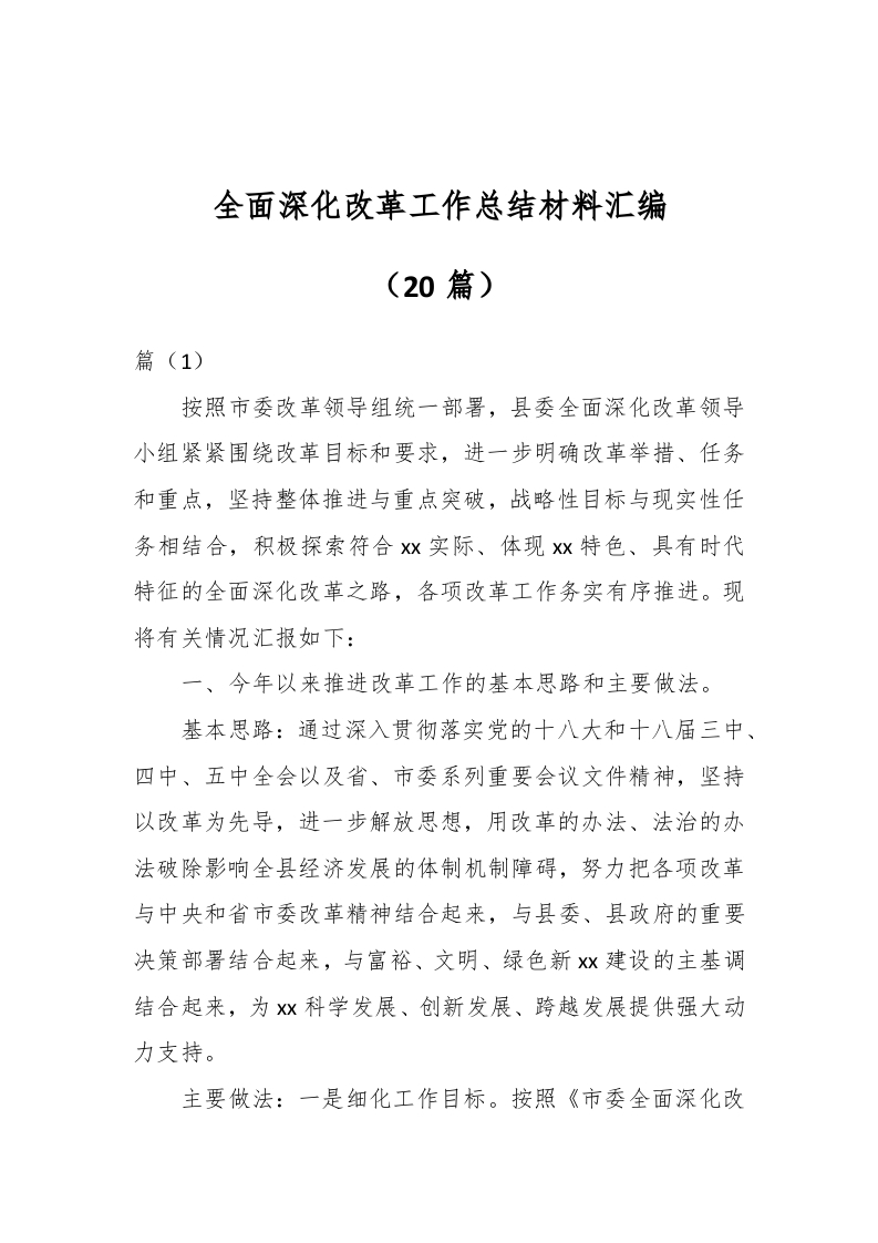 / (20篇)全面深化改革工作总结材料汇编