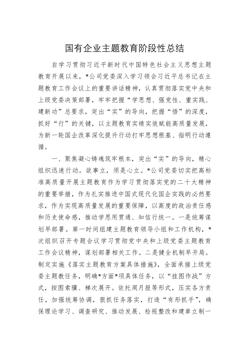 / 国有企业主题教育阶段性总结