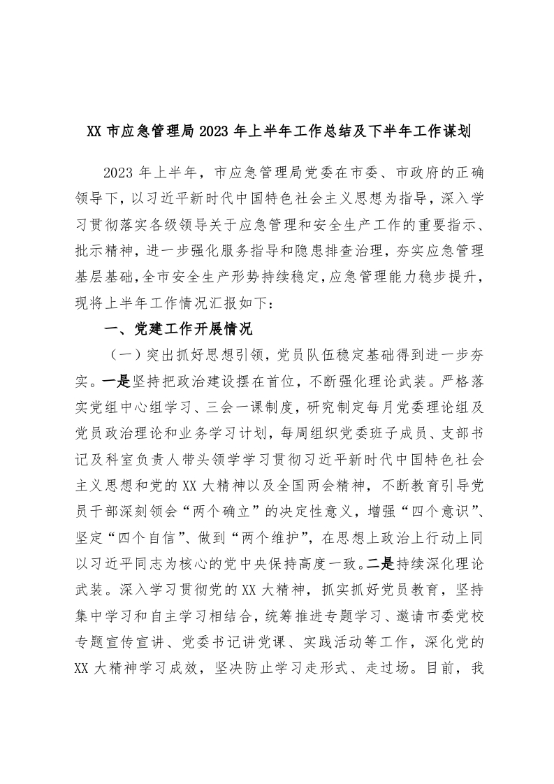 / XX市应急管理局2023年上半年工作总结及下半年工作谋划