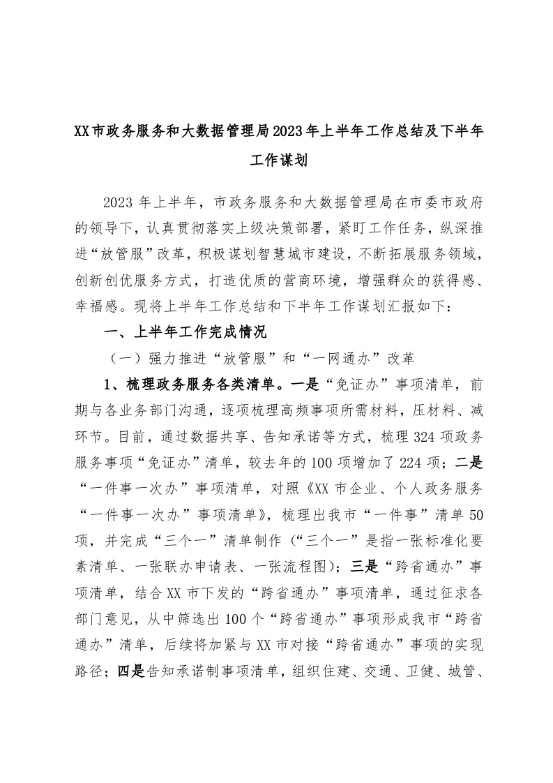 / XX市政务服务和大数据管理局2023年上半年工作总结及下半年工作谋划