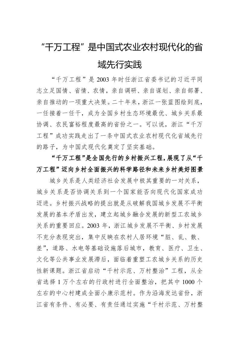 / “千万工程”是中国式农业农村现代化的省域先行实践