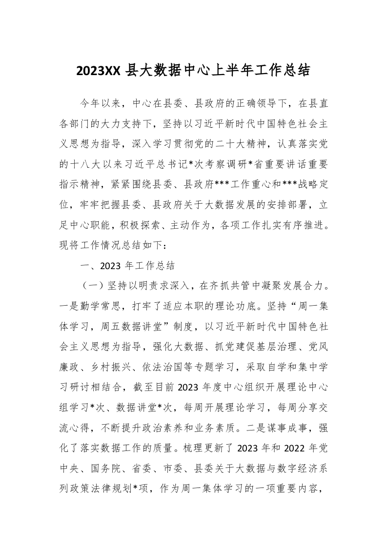/ 2023XX县大数据中心上半年工作总结