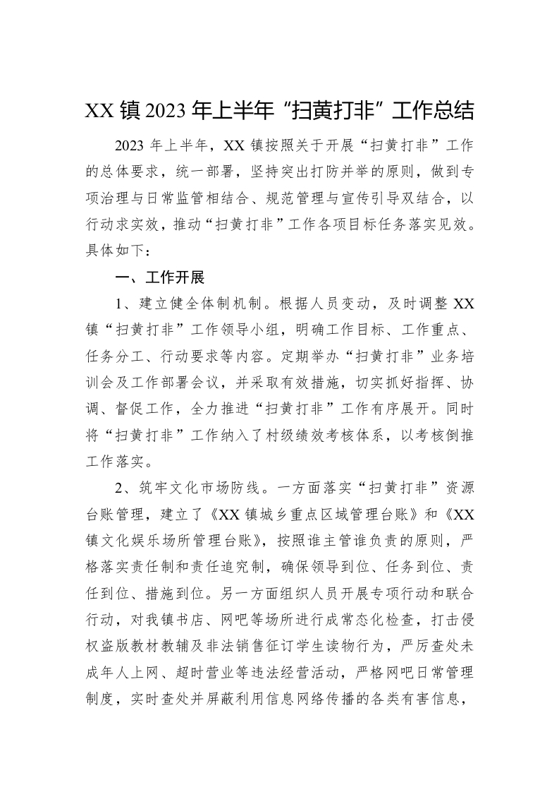 / XX镇2023年上半年“扫黄打非”工作总结