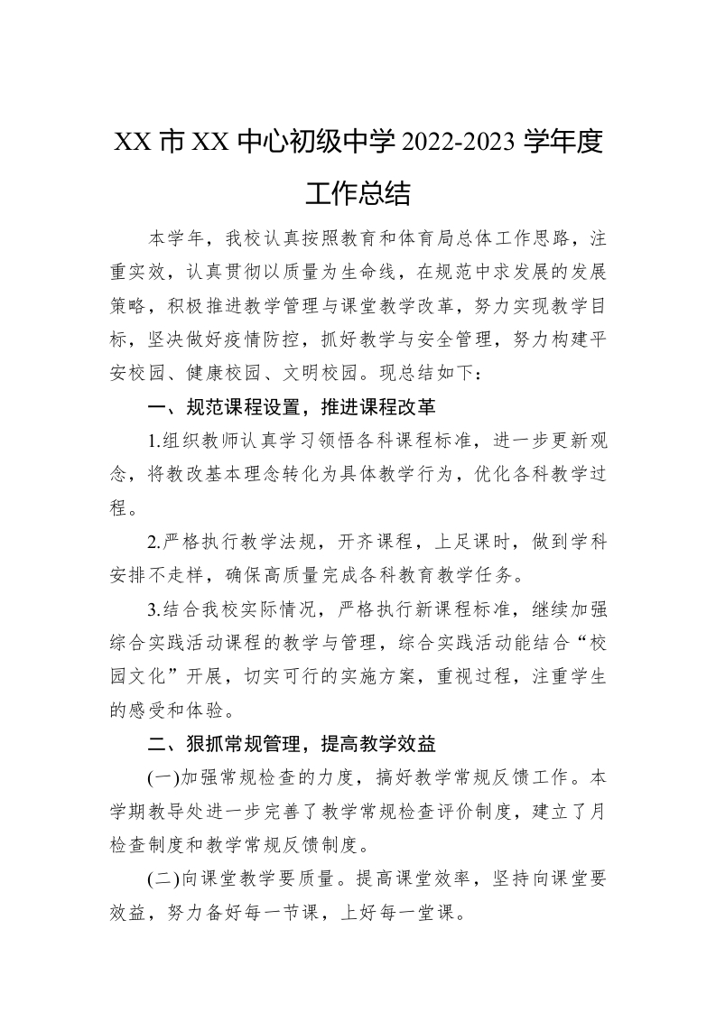 / XX市XX中心初级中学2022-2023学年度工作总结