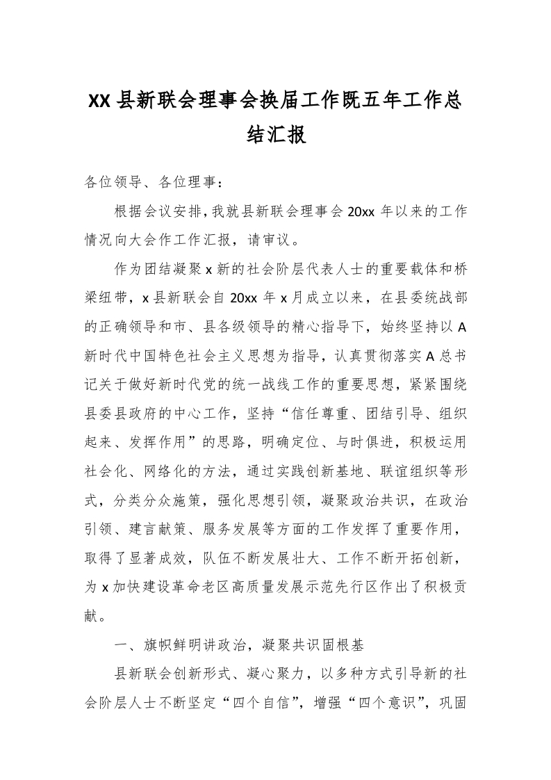 / XX县新联会理事会换届工作既五年工作总结汇报