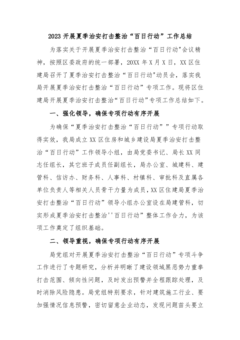 2023开展夏季治安打击整治“百日行动”工作总结