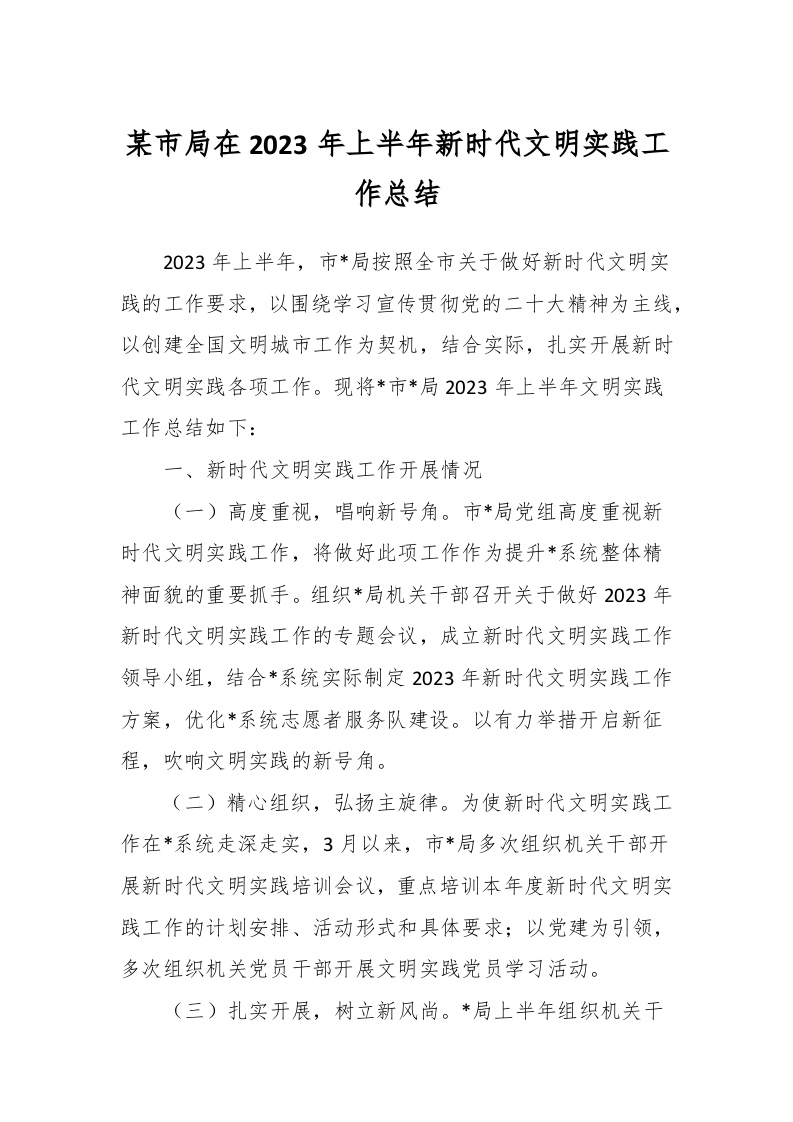/ 某市局在2023年上半年新时代文明实践工作总结