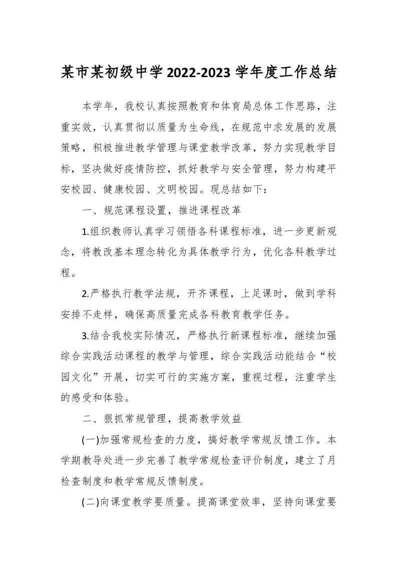 / 某市某初级中学2022-2023学年度工作总结