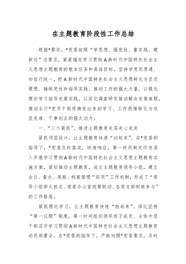 在主题教育阶段性工作总结