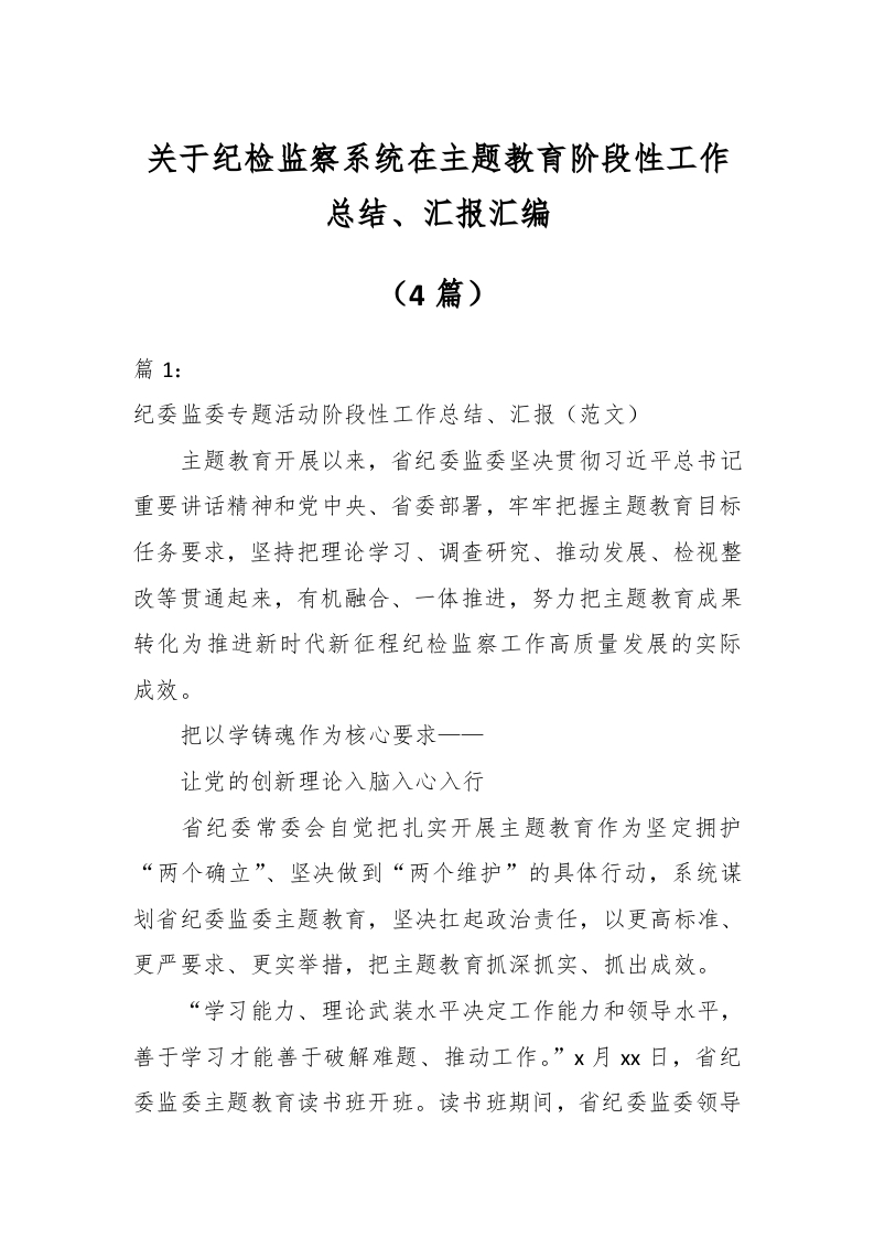 / (4篇)关于纪检监察系统在主题教育阶段性工作总结、汇报汇编