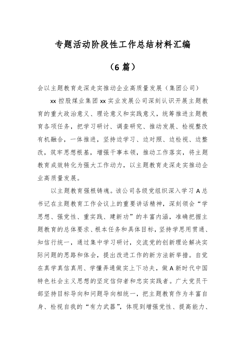 / (6篇)关于专题活动阶段性工作总结材料汇编