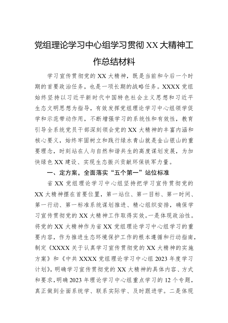 / 党组理论学习中心组学习贯彻XX大精神工作总结材料