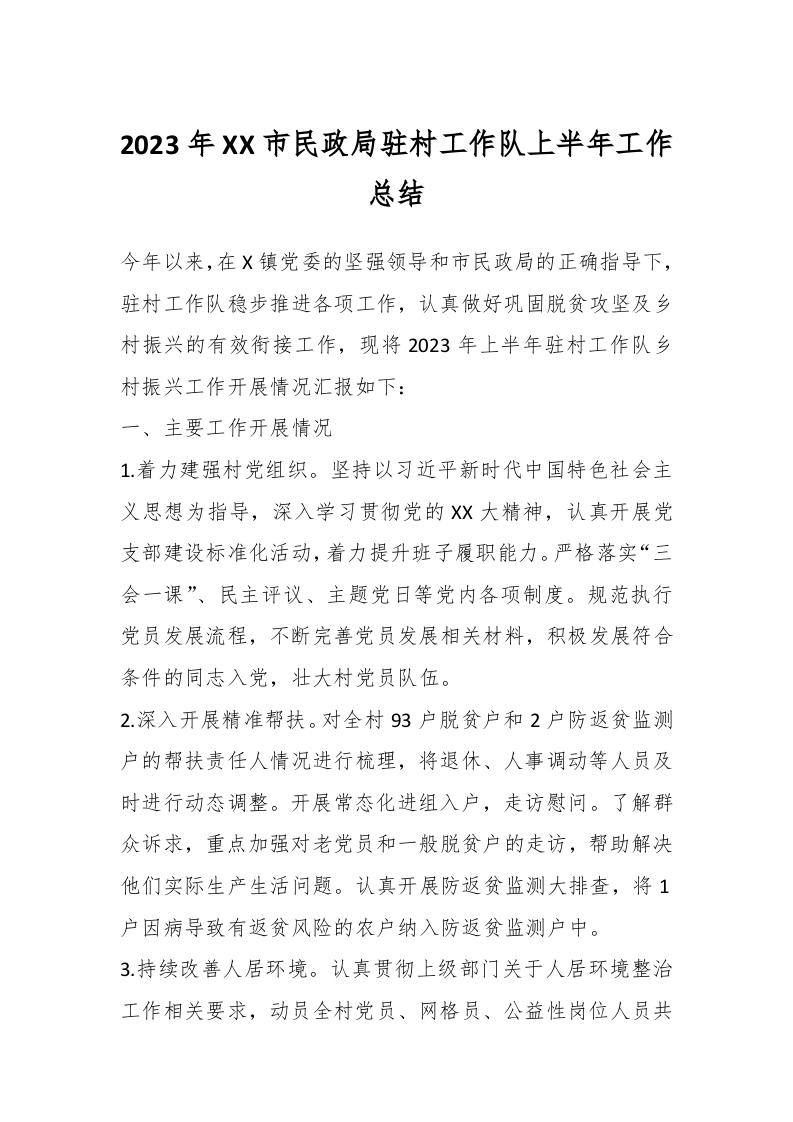 / 2023年XX市民政局驻村工作队上半年工作总结