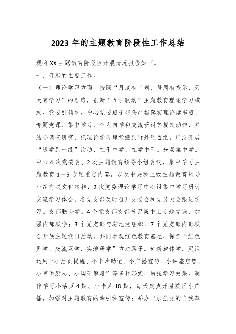 2023年的主题教育阶段性工作总结