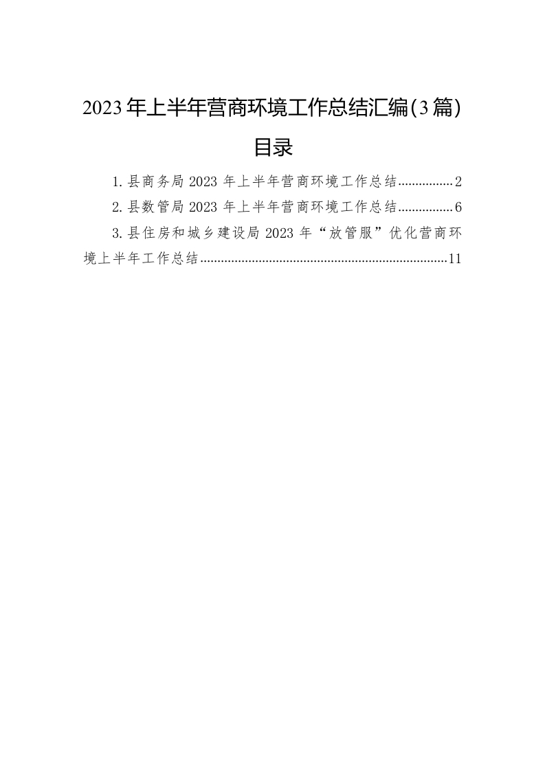 2023年上半年营商环境工作总结汇编(3篇)