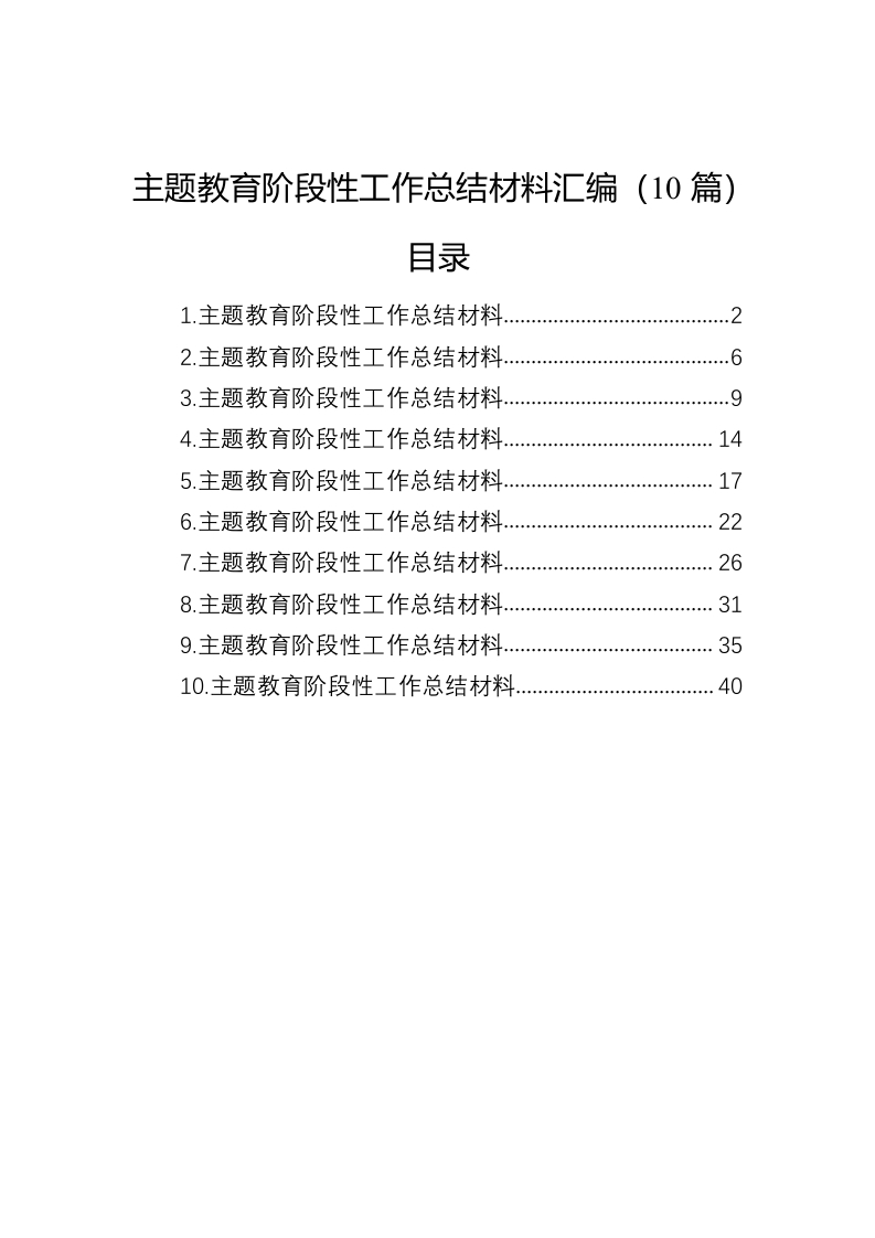 / 主题教育阶段性工作总结材料汇编(10篇)
