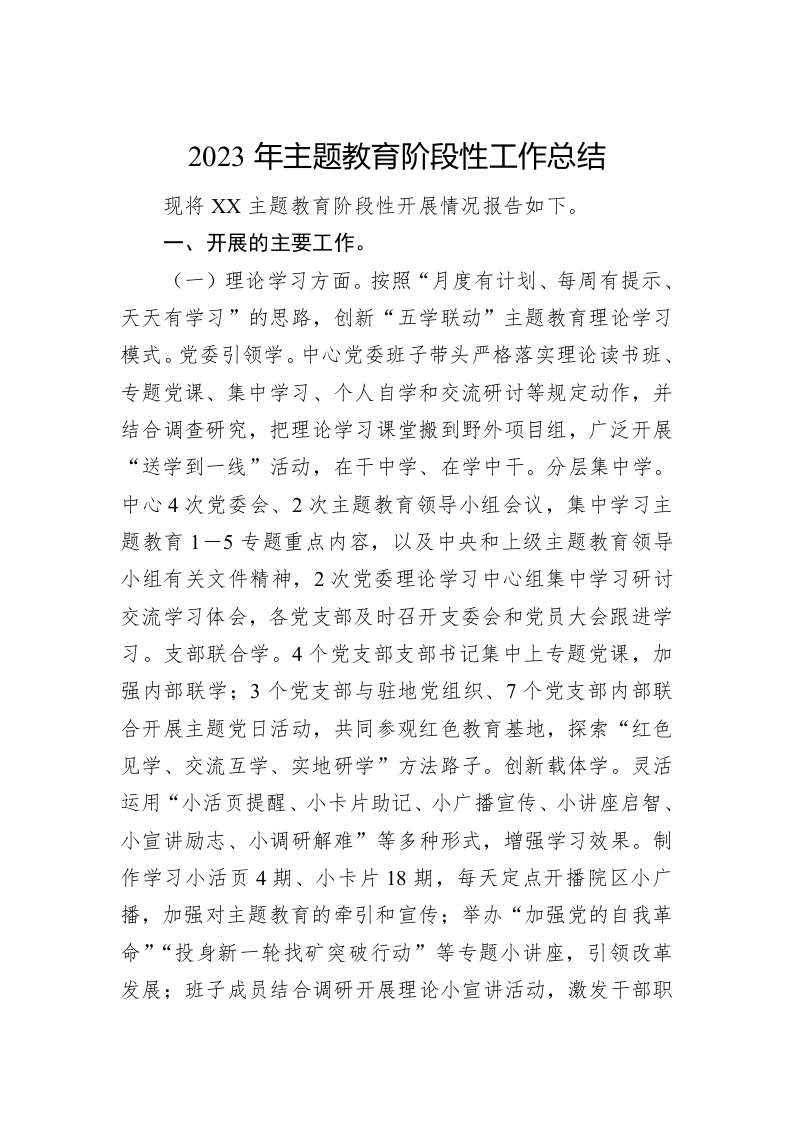 XXX单位2023年第一批主题教育自查评估工作总结(报告)