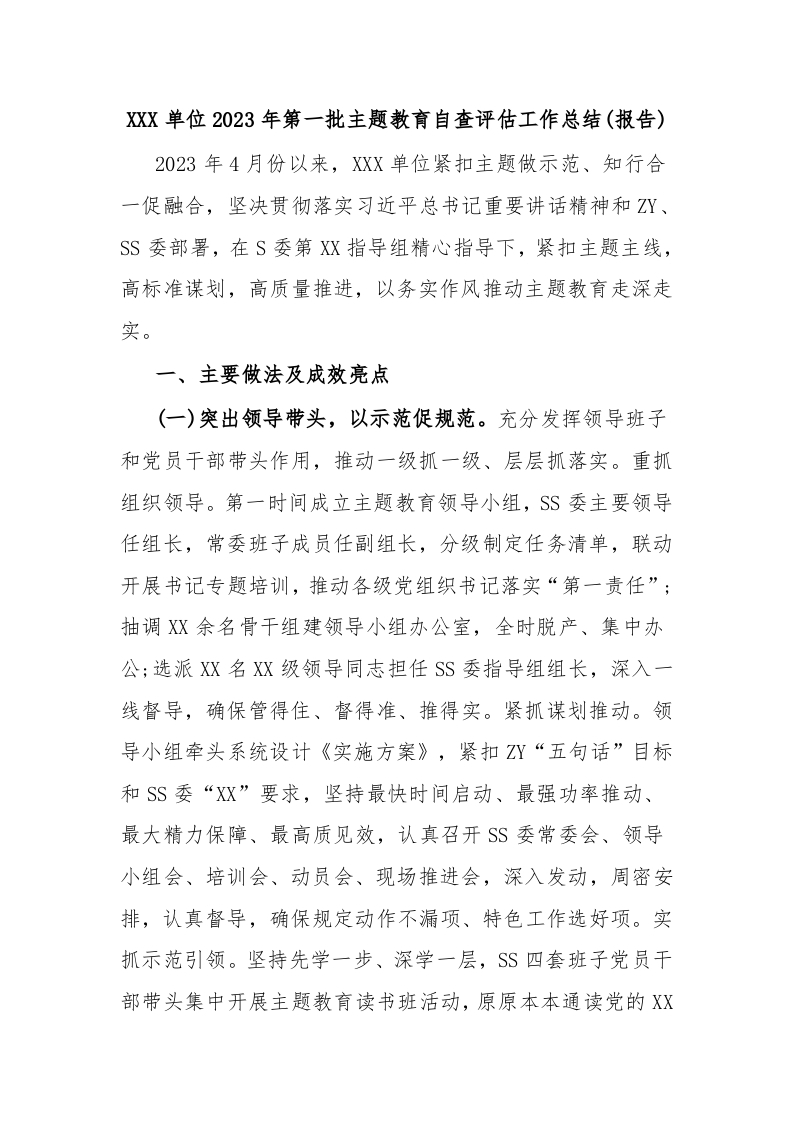 / XXX单位2023年第一批主题教育自查评估工作总结(报告)