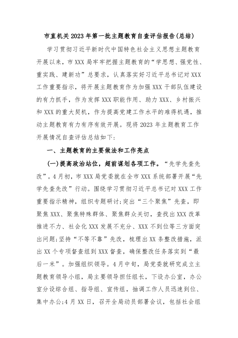 / 市直机关2023年第一批主题教育自查评估报告(总结)