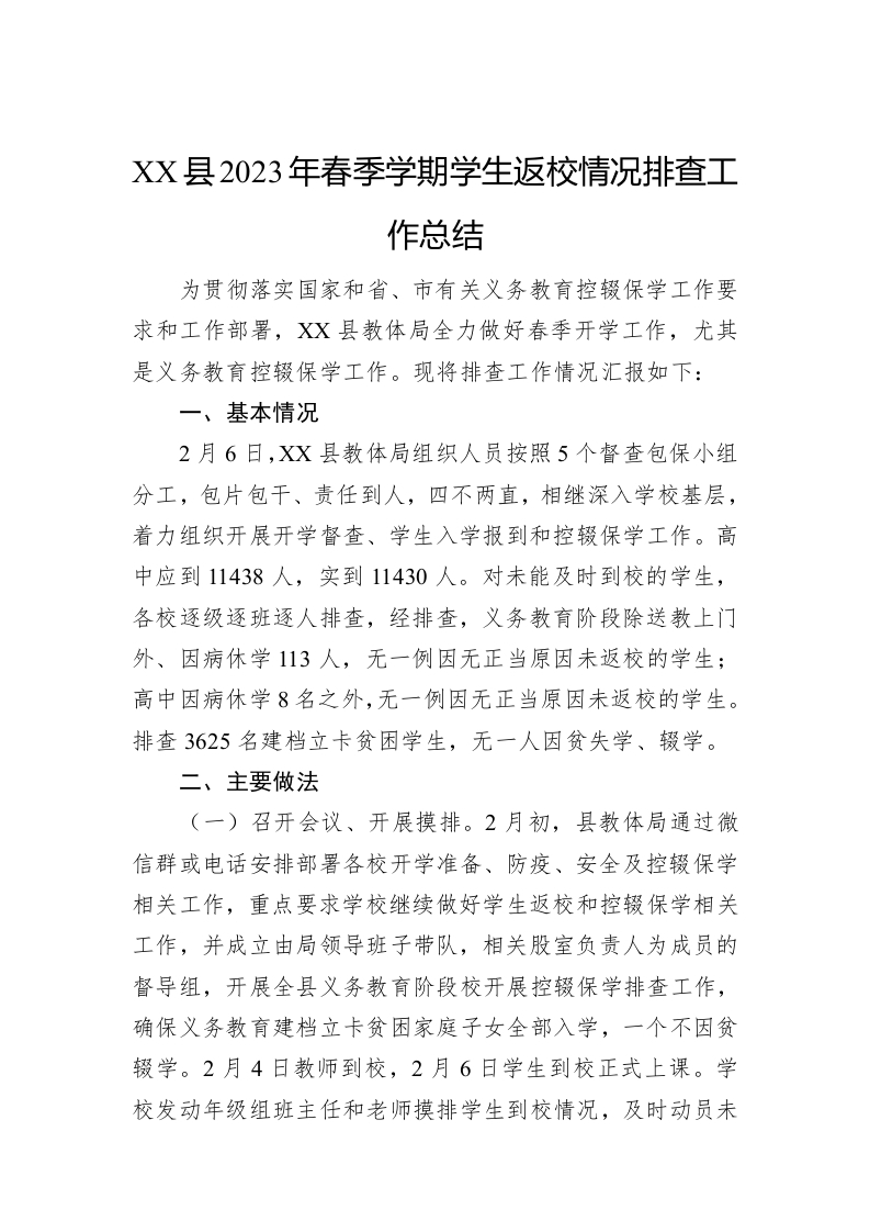 / XX县2023年春季学期学生返校情况排查工作总结