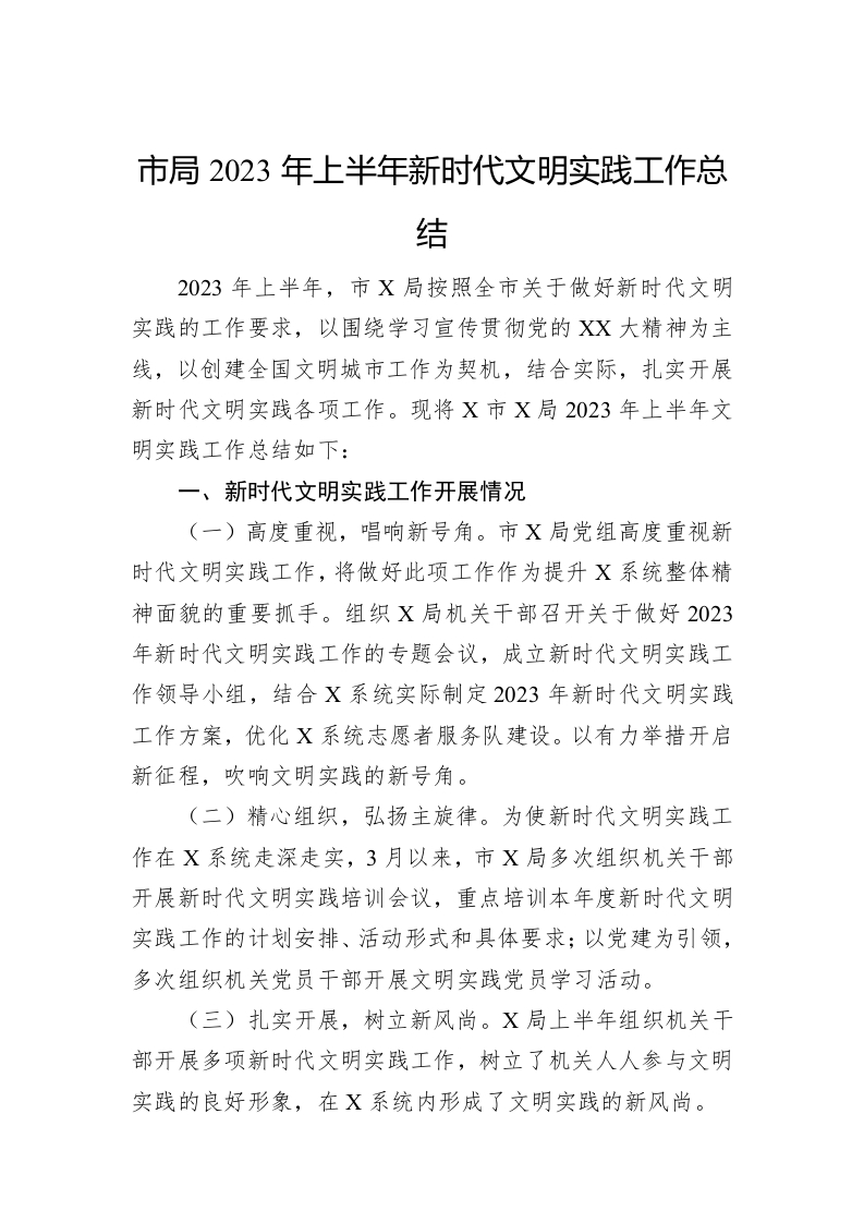 / 市局2023年上半年新时代文明实践工作总结