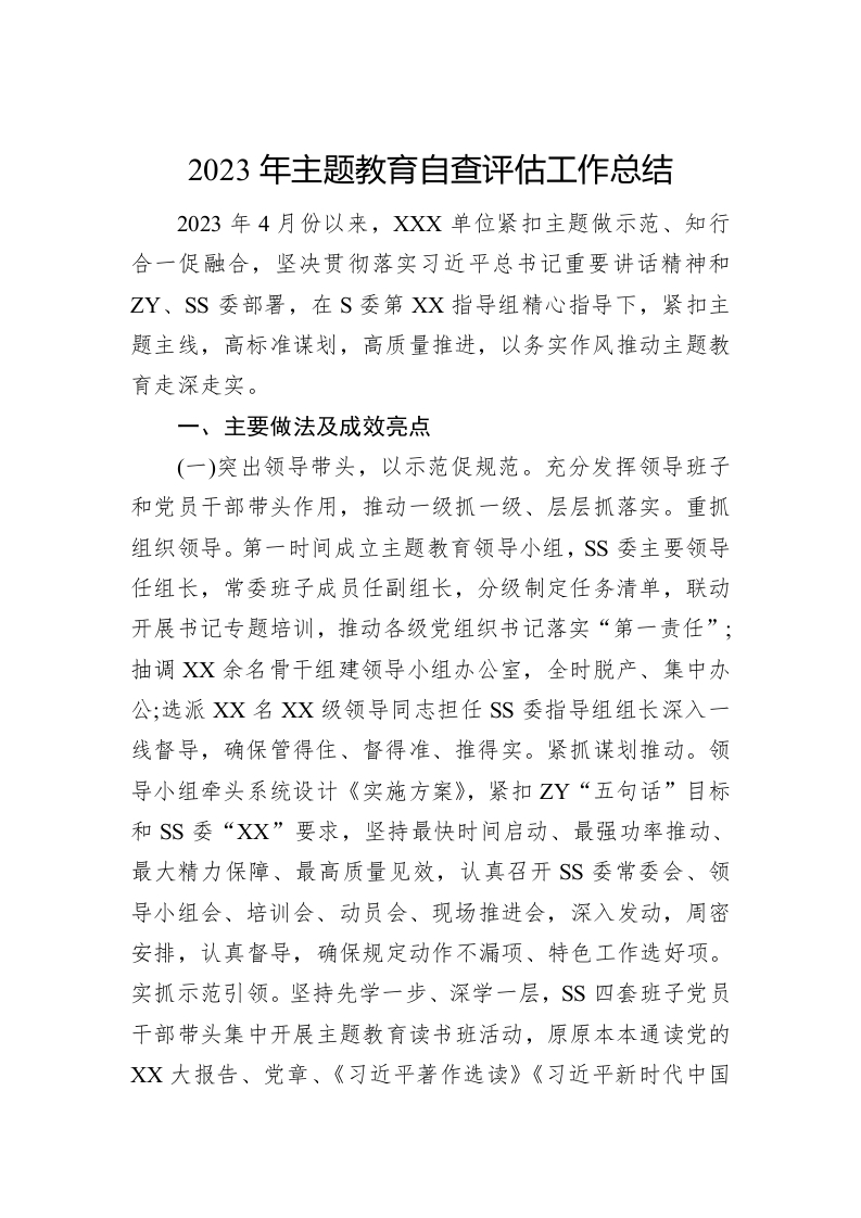 2023年主题教育自查评估工作总结